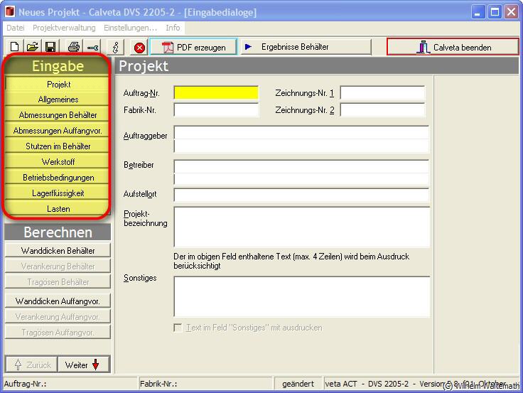Mit den Schaltknöpfen am linken Rand steuern Sie Ihre Eingaben.